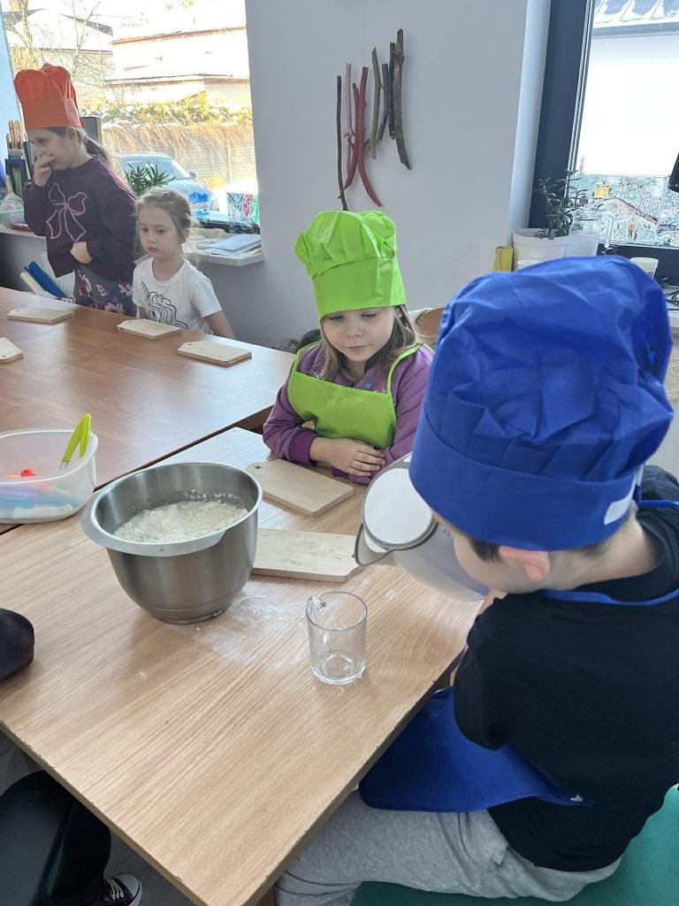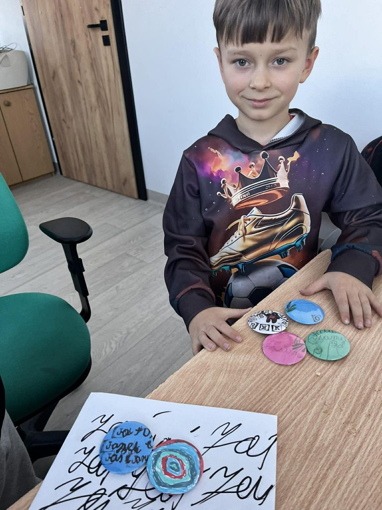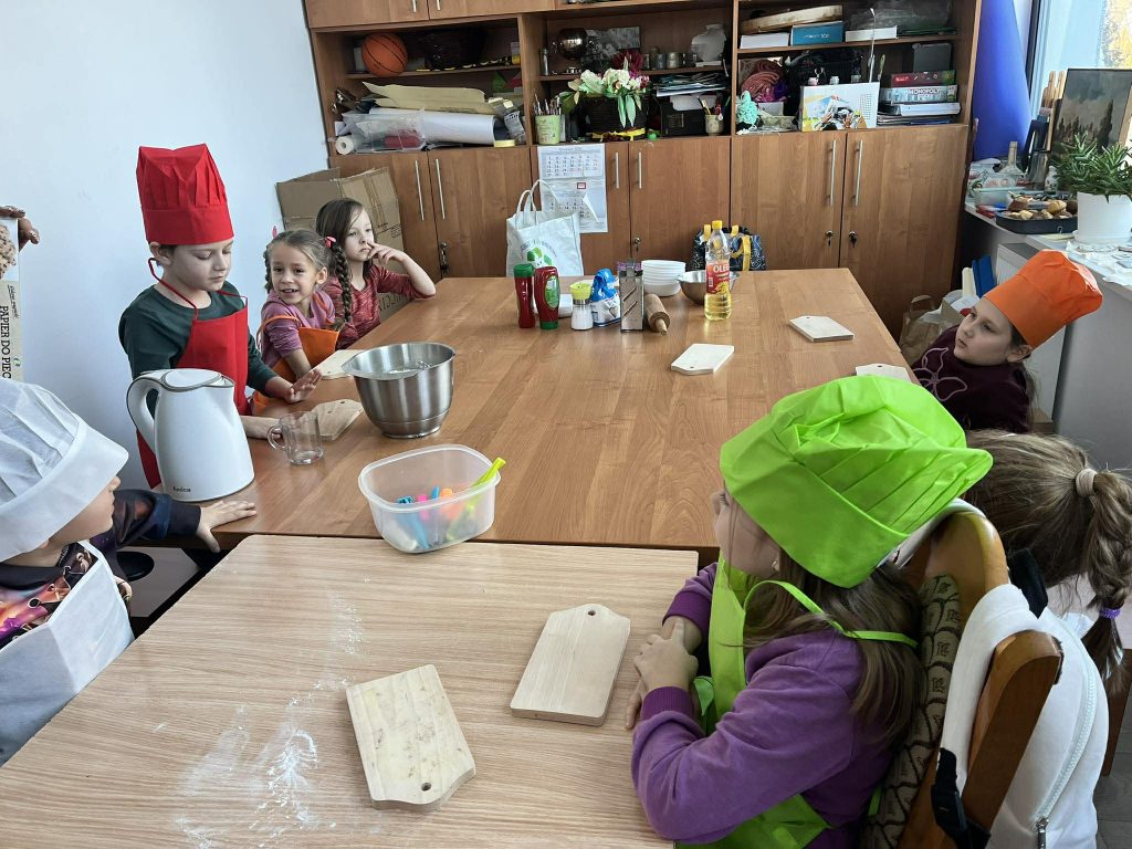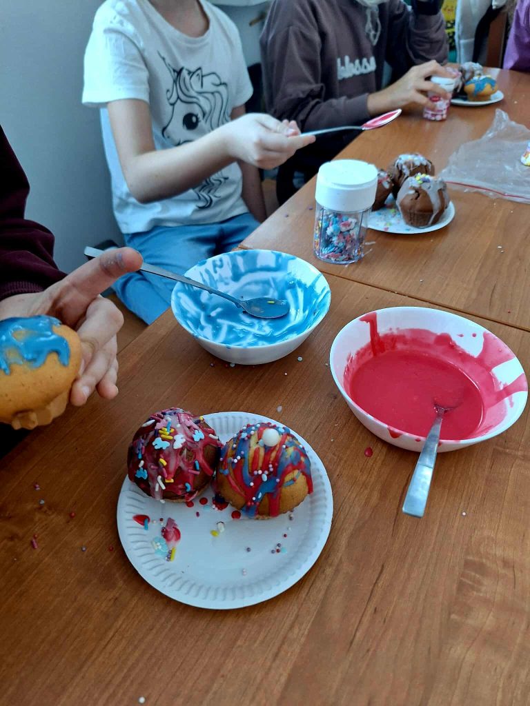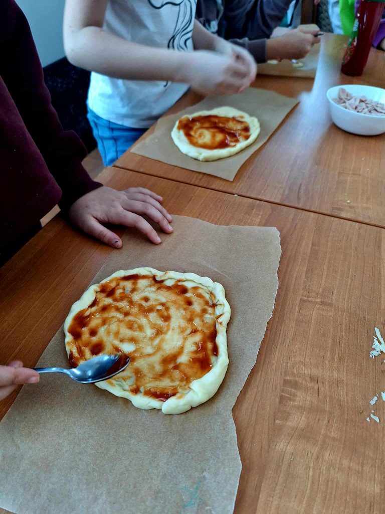 W trakcie zajęć uczestnicy brali udział w różnorodnych działaniach o charakterze kreatywnym i kulinarnym. Dzieci przygotowywały własnoręcznie przypinki, realizowały prace plastyczne z wykorzystaniem wielu technik i kolorów, a także uczestniczyły w zajęciach kulinarnych. Wspólnie wykonano babeczki oraz mini pizze, które po przygotowaniu zostały skonsumowane przez uczestników. Zajęcia sprzyjały rozwijaniu wyobraźni, zdolności manualnych oraz integracji grupy.