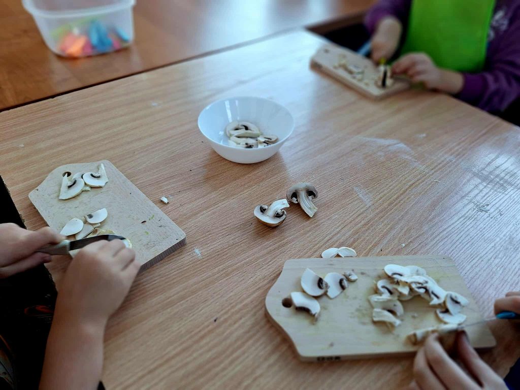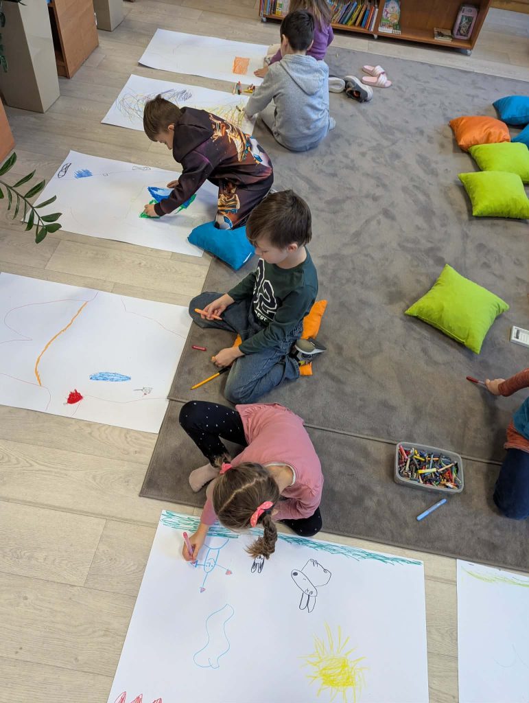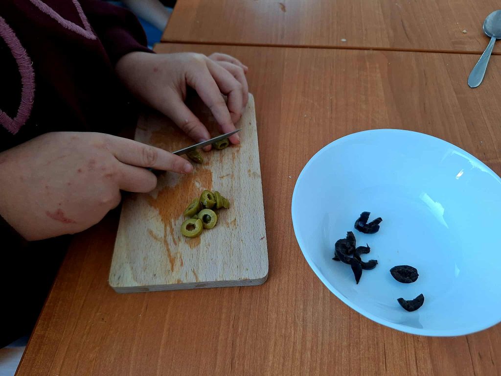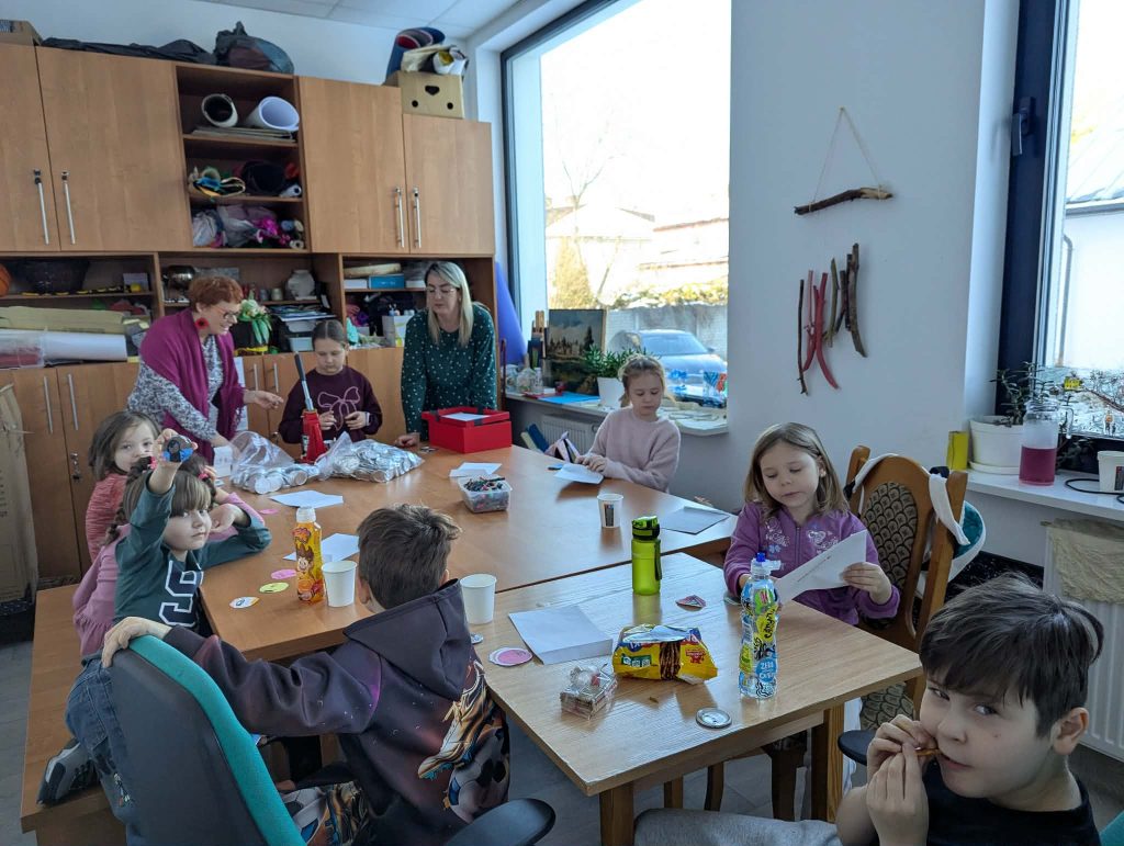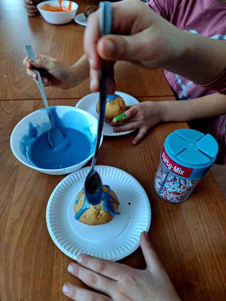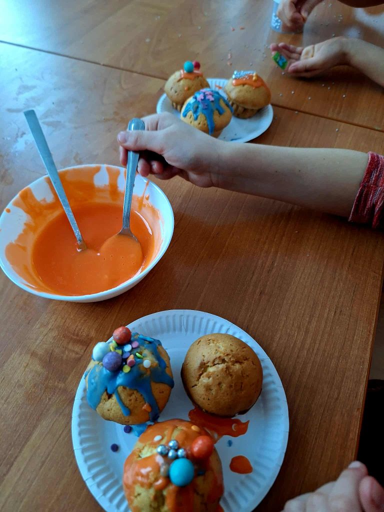 W trakcie zajęć uczestnicy brali udział w różnorodnych działaniach o charakterze kreatywnym i kulinarnym. Dzieci przygotowywały własnoręcznie przypinki, realizowały prace plastyczne z wykorzystaniem wielu technik i kolorów, a także uczestniczyły w zajęciach kulinarnych. Wspólnie wykonano babeczki oraz mini pizze, które po przygotowaniu zostały skonsumowane przez uczestników. Zajęcia sprzyjały rozwijaniu wyobraźni, zdolności manualnych oraz integracji grupy.